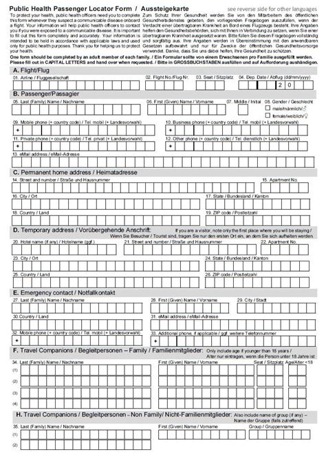 Flight guests should note that only a confirmation will be issued when. German Passenger Locator Form. Almost everyone who enters Switzerland must fill out the entry form online if they are entering by plane.