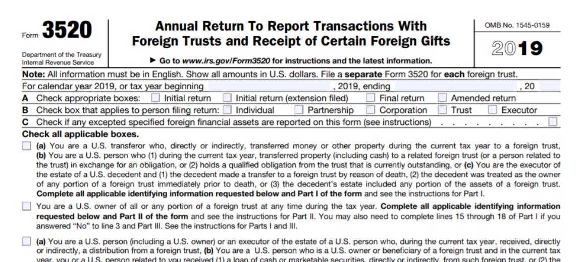 It is the tax form filed by a US. New IRS exemption from reporting on forms 3520 and 3520-A.